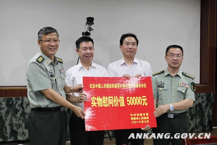 省人大常委会副主任、市委书记郭青,市长赵俊民看望慰问安康军分区官兵。郭青指出,近年来,全市上下坚决贯彻落实中省决策部署,着力抓好稳增长、促改革、调结构、惠民生、防风险、强党建各项工作,建设西北生态经济强市取得新进展,在全省2017年度目标责任考核和脱贫攻坚工作成效考核中喜获“双优秀”,实现了全省年度目标责任考核“三连优”。今年上半年,生产总值增速等4项主要经济指标位居全省第一,继续保持了积极向好的态势,实现了从一个发展滞后地区成为绿色快速崛起地区、从一个工作较落后地区成为工作先进地区的蜕变。驻安部队广大官兵始终视驻地为家乡,积极参与抢险救灾、安保维稳、脱贫攻坚、生态建设等工作,为维护社会大局稳定、保障人民群众生命财产安全、促进军民融合发展作出了重要贡献。