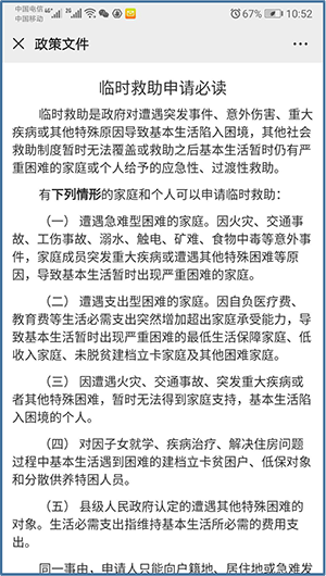 为了切实保障困难群众生活,让大家更方便、快捷的申请社会救助业务,陕西省民政厅推出了社会救助业务线上申请,救助申请人或协助人只要有具备网络接入的智能手机和实名认证的微信号,即可在微信进行城乡低保、特困供养、临时救助等社会救助业务申请,操作流程如下: