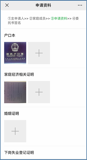 请在此界面上传您申请社会救助的相关资料,如:户口本、家庭经济证明(收入证明等)、婚姻证明等文件。并建议在其他资料中上传您的银行卡或存折照片。