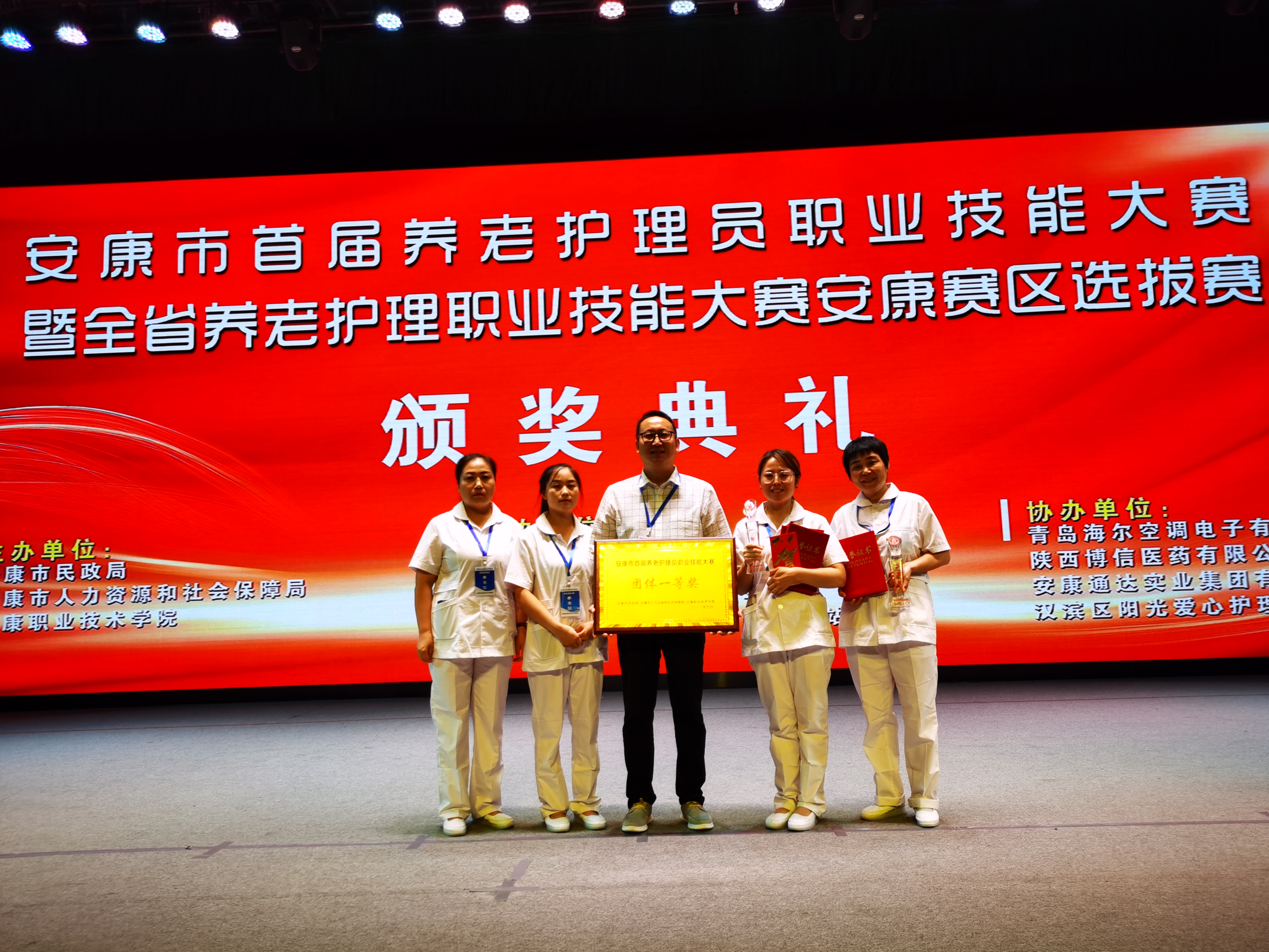 近日,汉阴县在安康市第一届养老护理员职业技能竞赛中喜获团体一等奖,其中王杰获得个人一等奖,同时被市人力资源和社会保障局授予安康市技术能手荣誉称号。