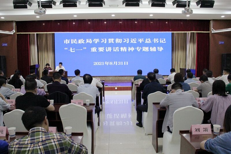 为进一步学习贯彻习近平总书记在“七一”庆祝中国共产党成立100周年大会上的重要讲话精神, 8月31日,市直民政系统举办学习习近平总书记“七一”重要讲话精神专题辅导讲座,邀请市委党校陈菊教授做“高举旗帜的政治宣言,开创未来的行动纲领——学深悟透习近平总书记‘七一’重要讲话精神”专题辅导讲座。h漫 党组成员、副局长,局机关党委书记燕卫东主持讲座。