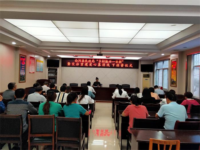为大力弘扬中华民族慈善扶贫济困的传统美德,营造人人参与乡村振兴的良好氛围,在第七个九九公益日到来之际,白河县h漫组织全体干部职工开展“乡村振兴一日捐”暨灾后重建爱心募捐线下捐赠活动,汇聚慈善力量,助力乡村振兴和8.28强降雨灾后恢复重建。