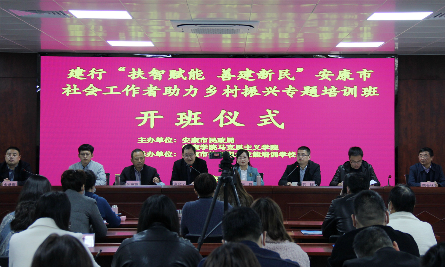 局长许启汉,安康学院马克思主义学院党总支书记田静、副院长韩晔,市护理职业技能培训学校校长余承群、安康学院陕南乡村振兴研究中心主任何家理教授等有关领导和专家参加开班仪式。