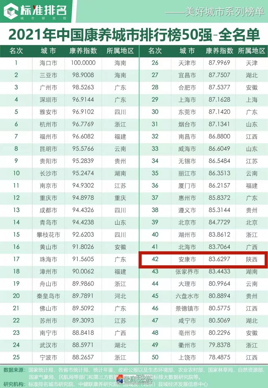 一、 安康市连续5年入选中国康养城市50强,成为西北五省唯一上榜城市。