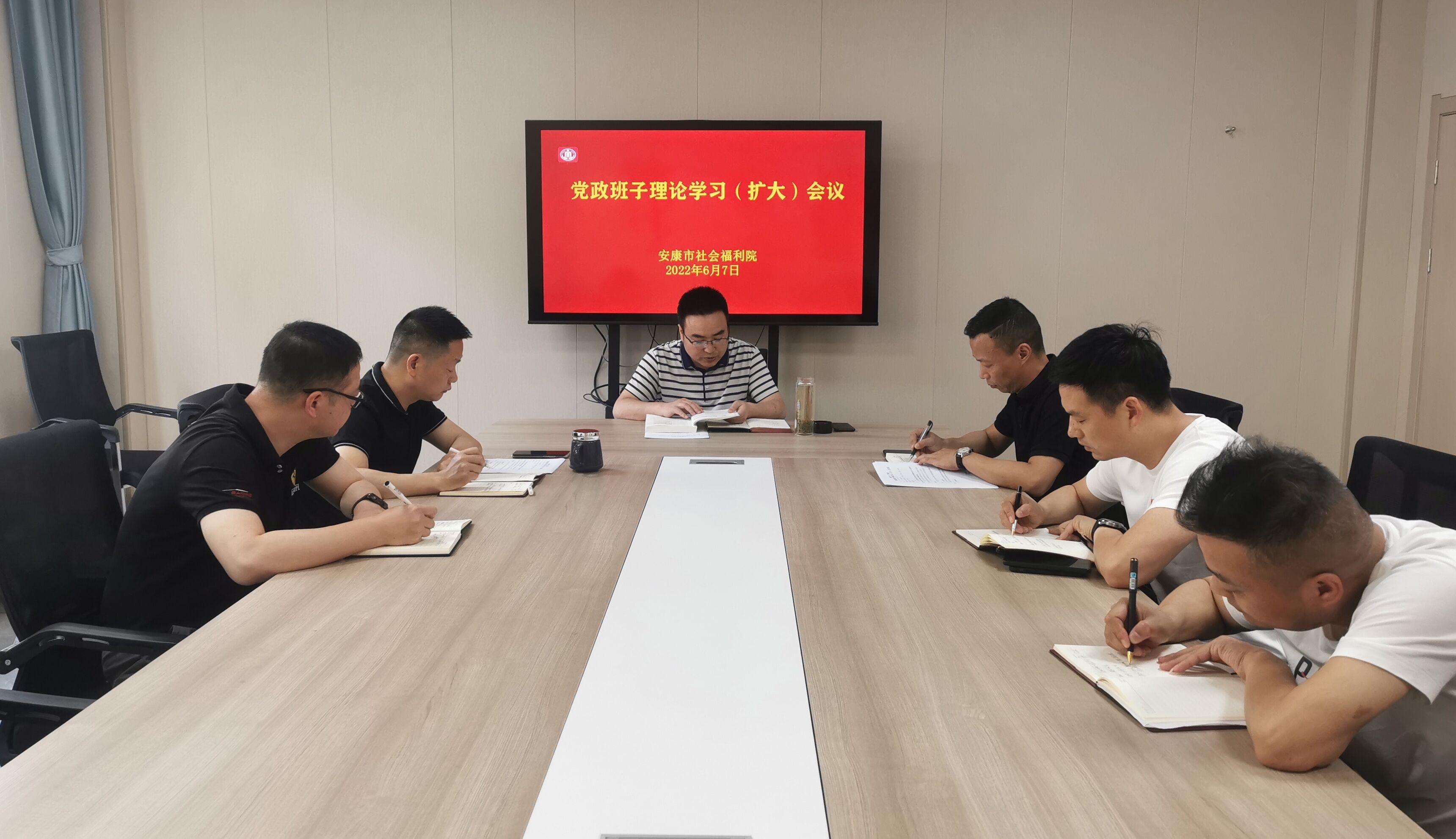 6月7日上午,市社会福利院召开二季度领导班子理论学习(扩大)会议,院领导班子成员、科室负责人和入党积极分子参加会议,会议由院长王昌全主持。