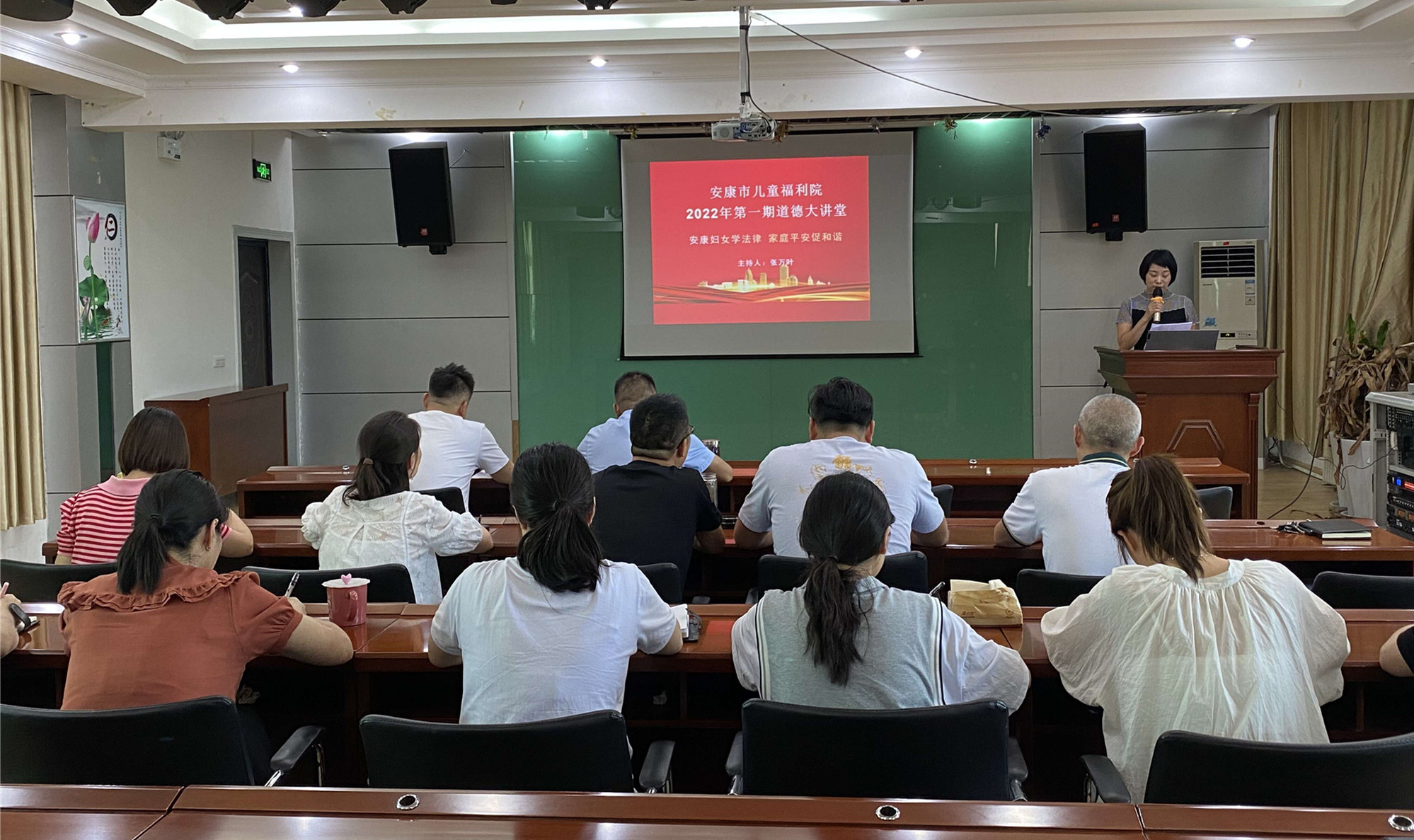 6月27日,市儿童福利院开展了主题为“安康妇女学法律 家庭平安促和谐”道德大讲堂活动,活动通过唱歌曲、学思想、看视频、谈感悟四个环节,形象生动的讲解了妇女权益保障法,倡导妇女自尊、自信、自立、自强,让大家学会依法按程序表达诉求,用法律武器维护自身合法权益,全面营造遵法、学法、守法、用法的浓厚氛围。