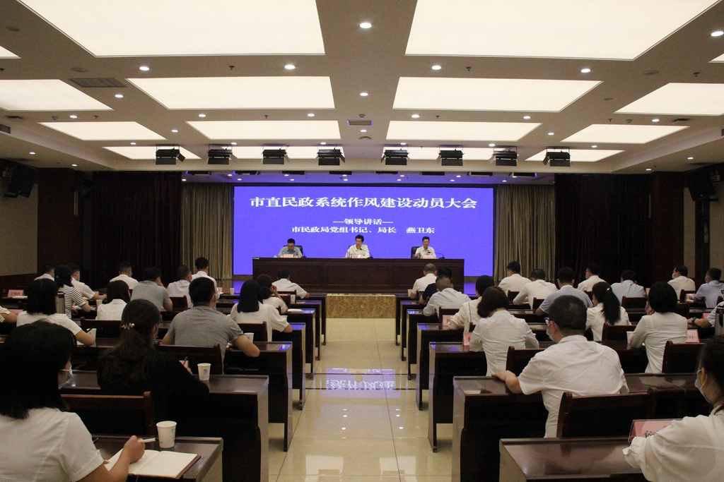 9月15日,市直民政系统召开作风建设动员大会,深入学习贯彻习近平总书记关于作风建设的重要论述,认真落实省委、市委有关部署要求,对市直民政系统开展作风建设进行全面动员部署,进一步深化民政系统“转变作风、提升能力、开创民政工作新局面”主题教育活动,确保与省委、市委作风建设部署安排同频共振、一体推进、贯通落实。
