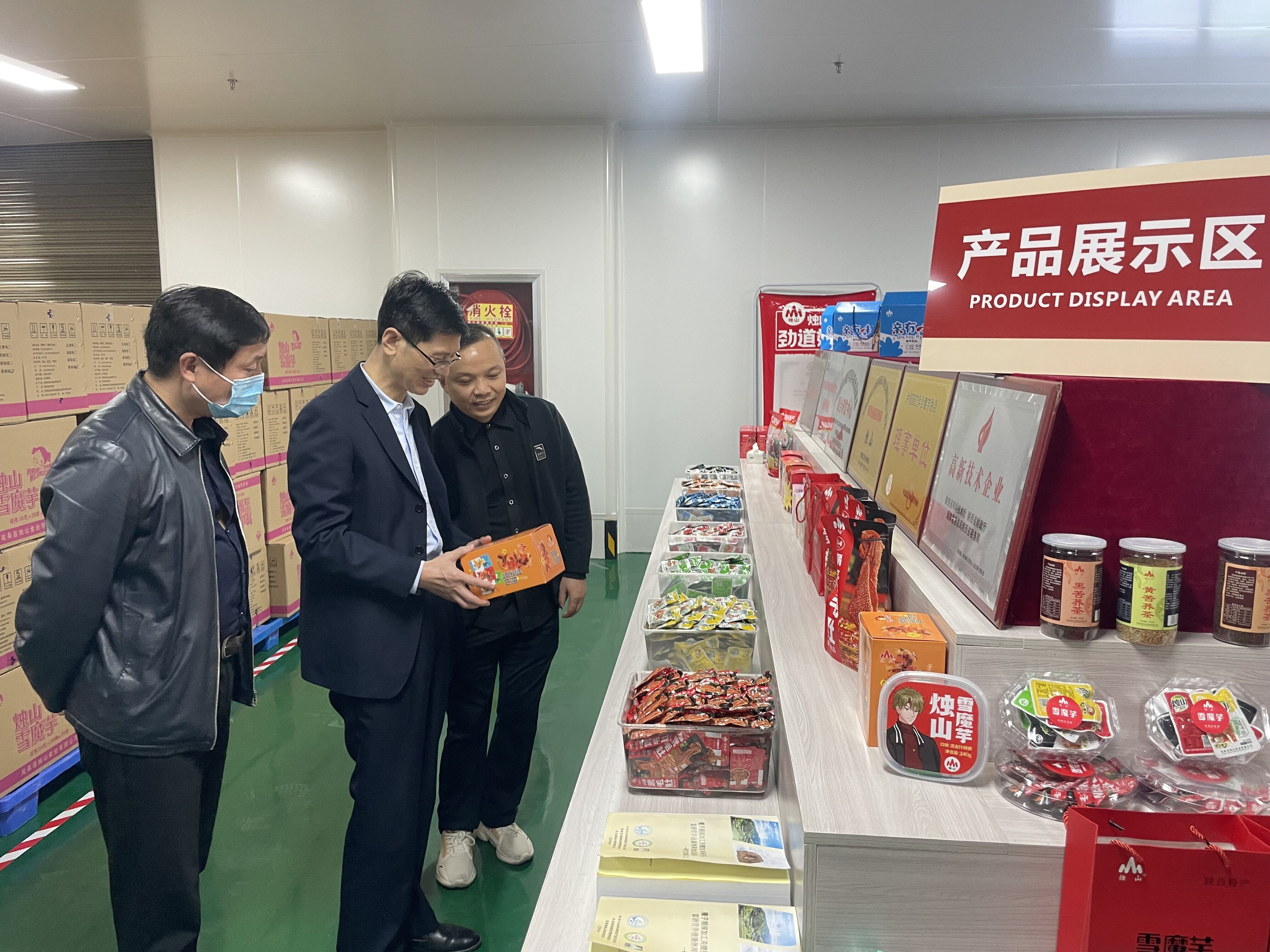 叶荣斌一行参观了魔芋食品生产车间和产品展示大厅,实地查看了企业生产状况和园区扩建项目进度,与企业负责人深入交谈,详细了解企业发展规划、生产加工、产品研发、品牌推广、市场营销情况以及生产经营中存在的困难,共同研究解决途径,帮助企业拓展思路,进一步提升发展水平。