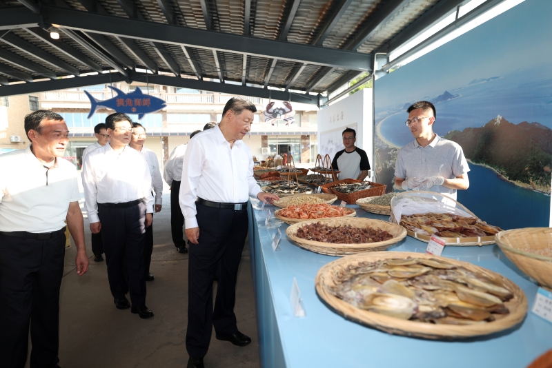 10月15日至16日,中共中央总书记、国家主席、中央军委主席习近平在福建考察。这是15日下午,习近平在漳州市东山县陈城镇澳角村考察时,了解海鲜干货和渔获产品交易情况。新华社记者 谢环驰 摄