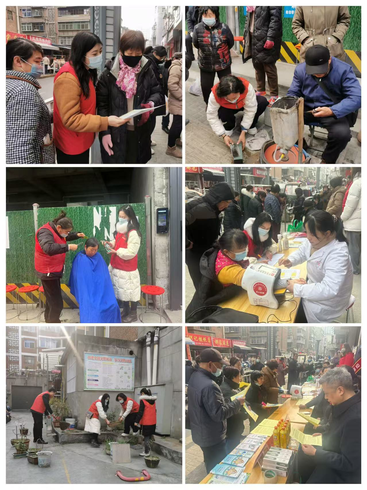 上午10点,静宁路上欢声笑语、热闹非凡。党员干部组成“孝义志愿服务队”积极投入到活动中。一位志愿者引导老人坐好,围好围布,专业理发师拿起剪刀为老人开始爱心理发;一位志愿者准备磨刀工具,磨刀师傅便忙碌着为老人从家中带来的菜刀开始磨刀;针对行动不便的老人,他们还会上门为老人服务。另一边,几位老人排队等待护士测量血压,两位志愿者在旁为老人们宣传健康教育知识,讲解健康饮食指南、慢性疾病预防建议等;有的志愿者与银行工作人员一起为老人宣传金融防诈骗安全知识,叮嘱老人提高警惕,加强防范;还有几位志愿者为静宁小区老人打扫卫生,经过一番辛勤劳作,楼前楼后的枯叶杂物以及卫生死角都被彻底清除,焕然一新的环境也让老人倍感舒心。