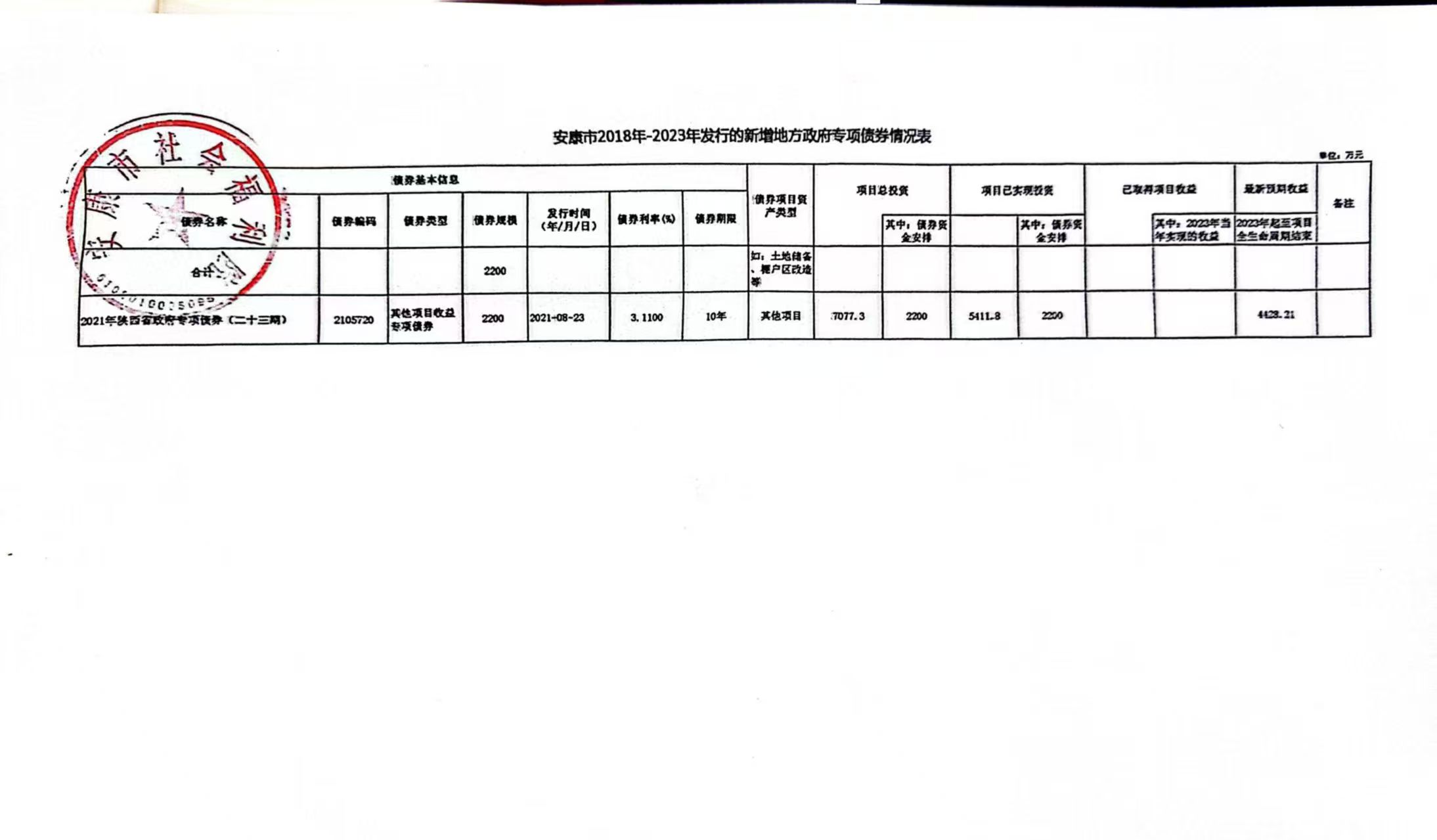安康市2018年—2023年发行的新增地方政府专项债券情况表