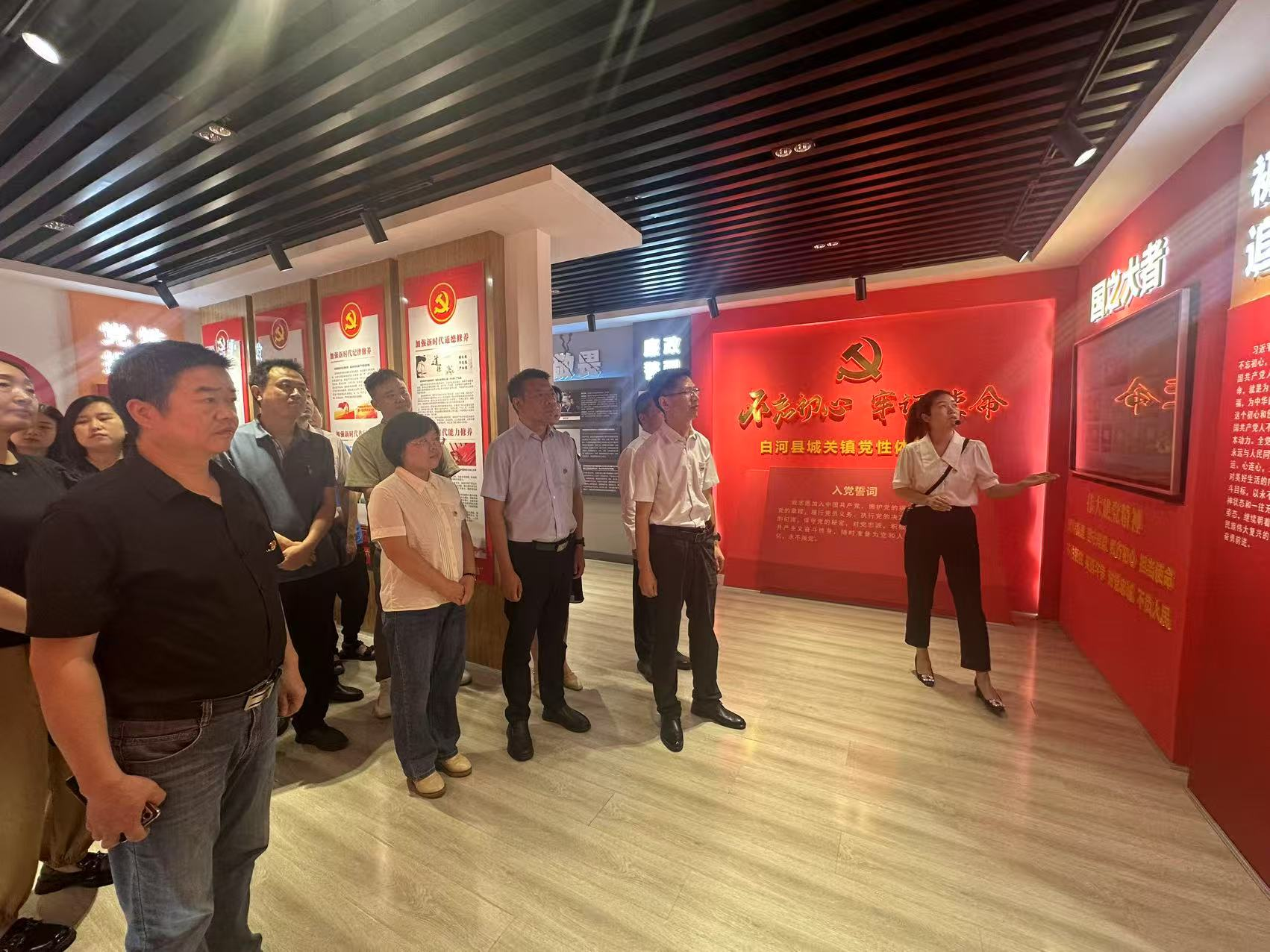 党员干部依次参观了白河县城关镇廉政教育基地和白河县法院廉洁教育基地。在讲解员的引导下,大家通过观看图文展示、警示案例,深入了解党的作风建设历程和党纪法规要求。一行行振聋发聩的名言警句,一桩桩鲜活的违纪违法案例,为党员干部敲响了拒腐防变的警钟,促使大家深刻反思,进一步筑牢了清正廉洁的思想防线,增强了自觉落实中央八项规定精神、永葆共产党人忠诚干净担当的决心。