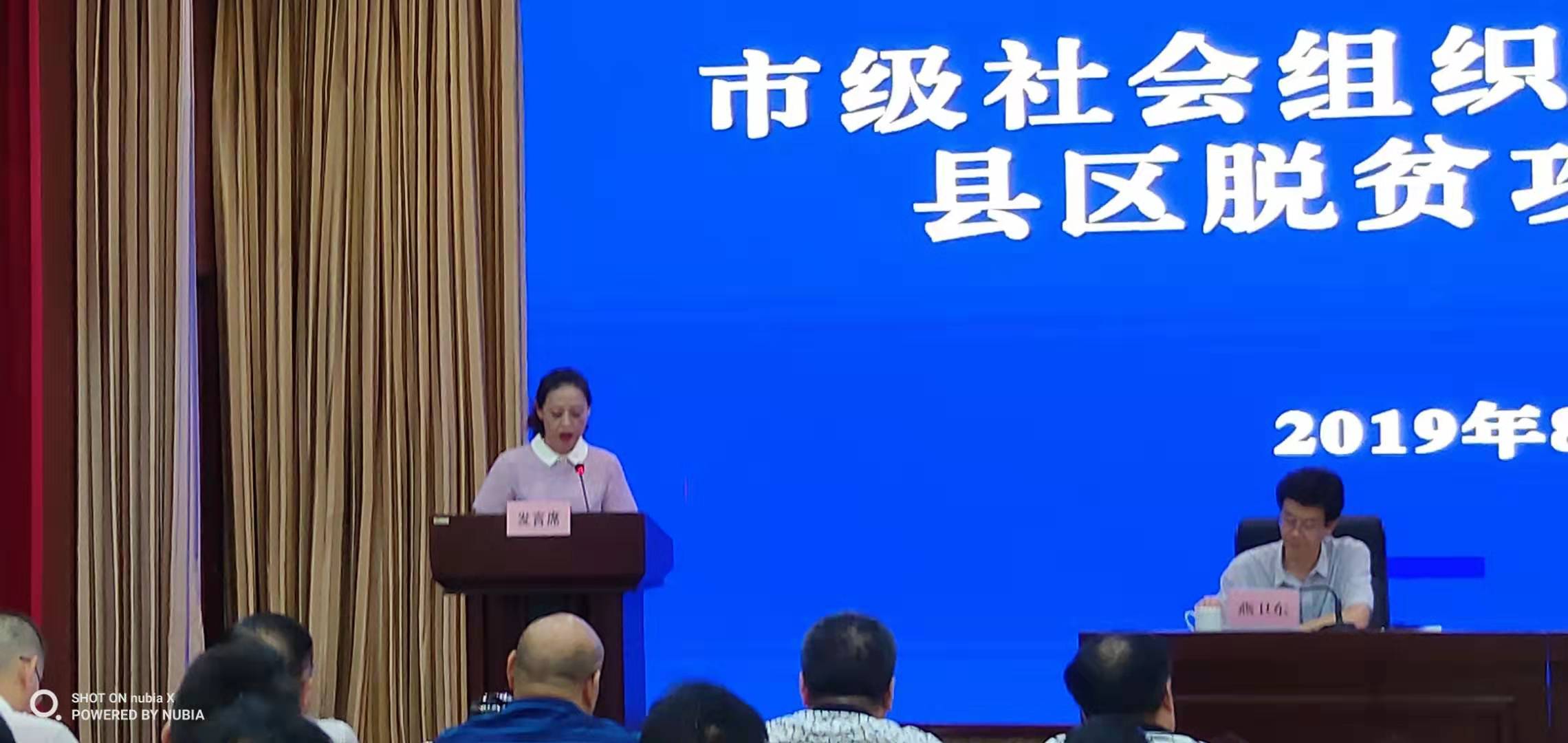 为进一步贯彻落实省、市对社会组织助力精准扶贫各项决策部署,围绕“三个聚焦”,凝聚工作合力,8月28日h漫 召开了市级社会组织助力深度贫困县区脱贫攻坚动员会,各县区h漫副局长、社会组织业务股长,社会组织扶贫合力团负责人参加了会议。