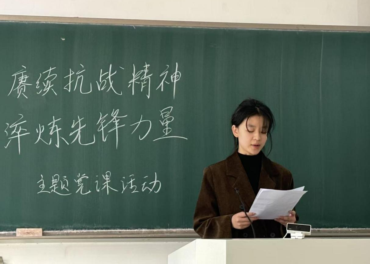 学生党支部于10月14日中午在龙子湖校区繁塔楼E109开展了以“赓续抗战精神,淬炼先锋力量”为主题的党课活动。
