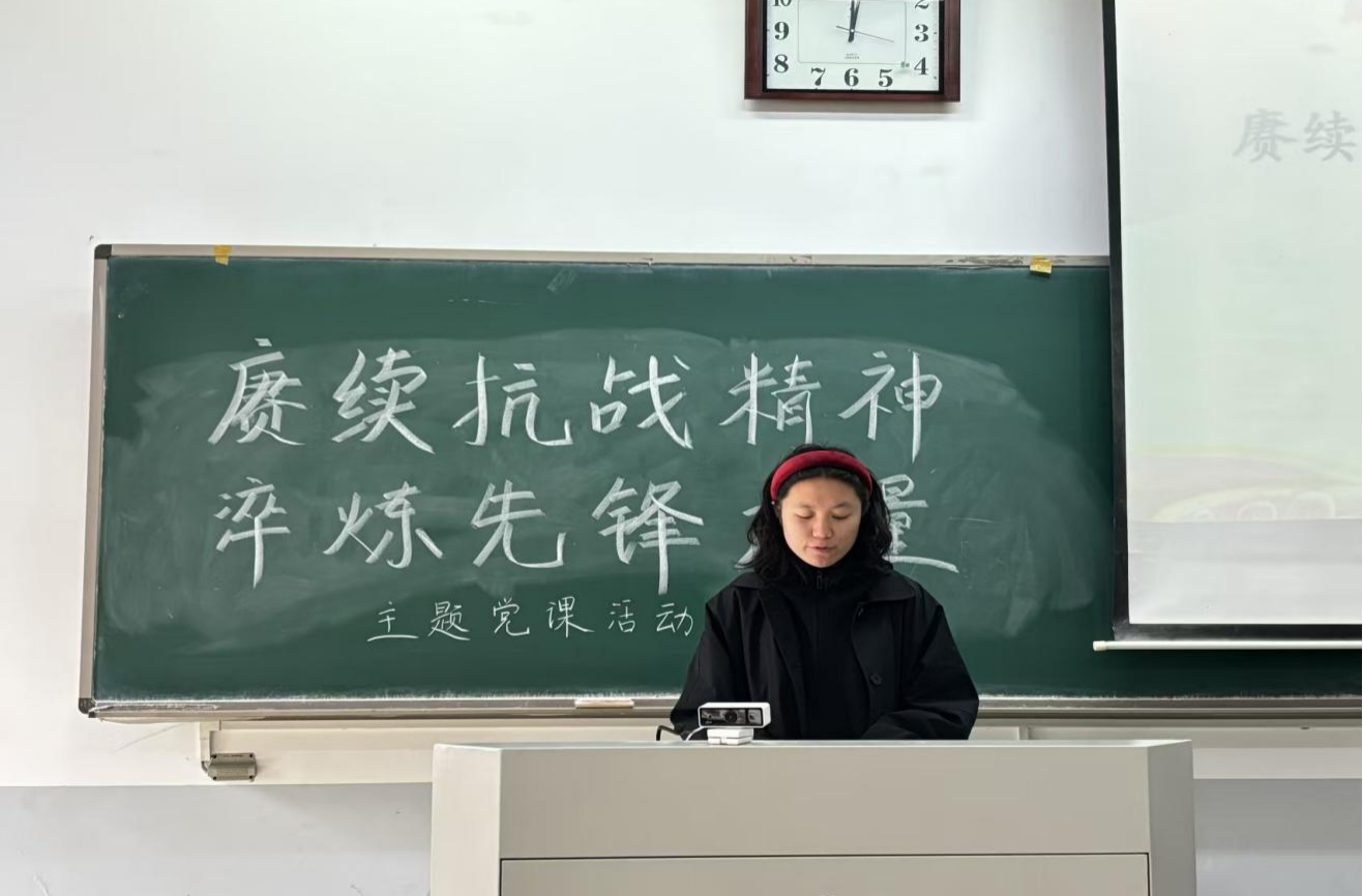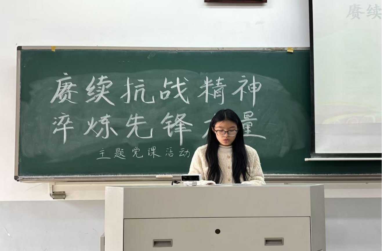 学生党支部于11月11日中午在龙子湖校区繁塔楼E107开展了以“赓续抗战精神,淬炼先锋力量”为主题的党课活动。