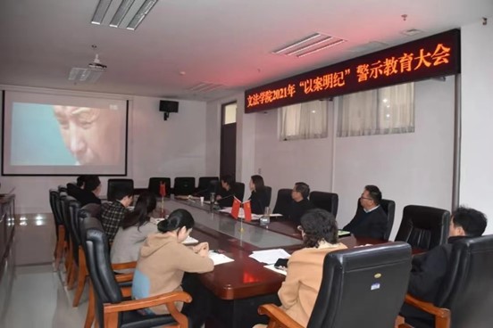 在龙子湖校区繁塔楼A310会议室召开“以案明纪”警示教育大会。学院领导班子成员及全体教职工参加会议,会议由院长王晓勇主持。