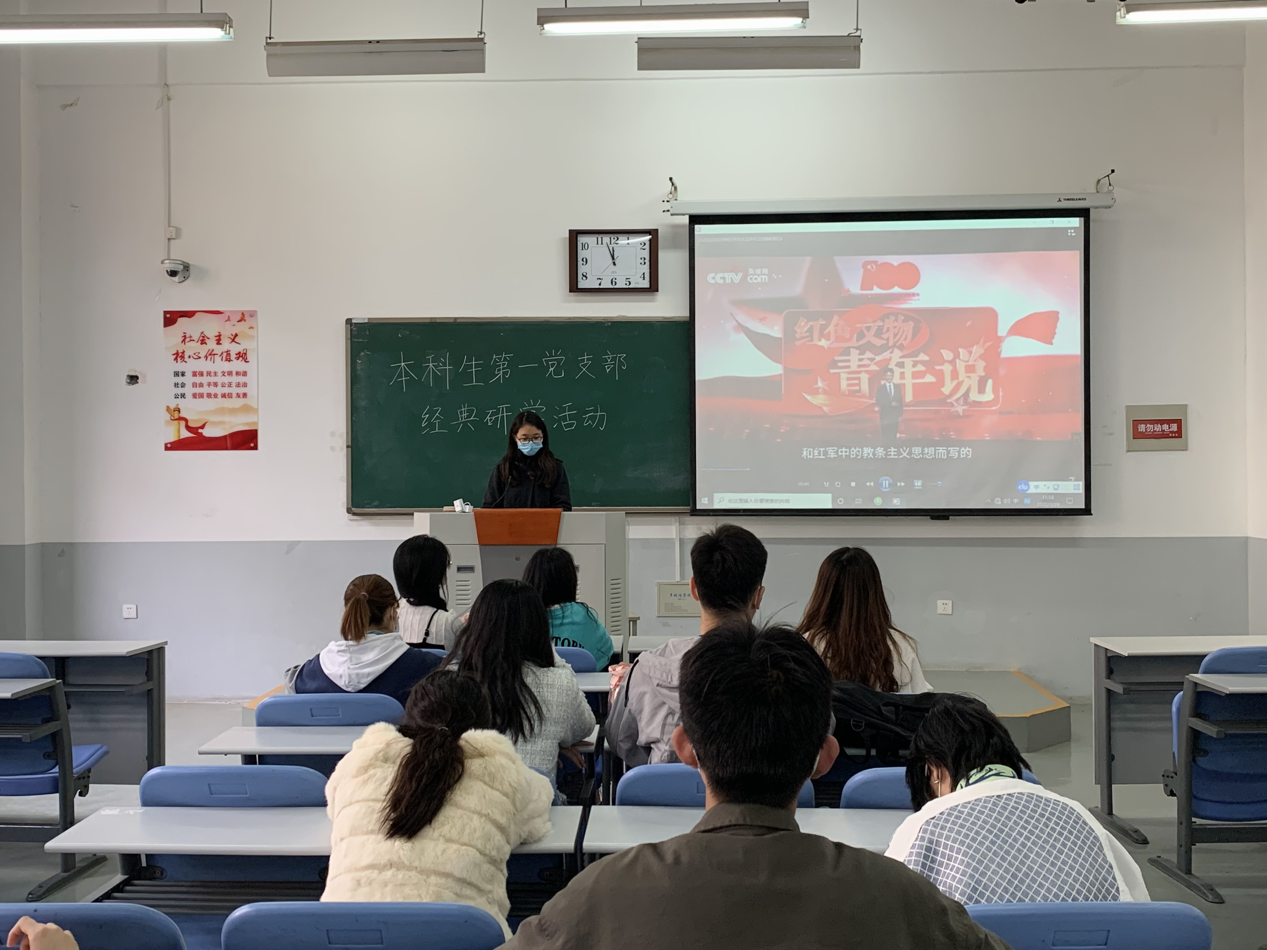 组织本科生第一党支部全体党员于繁塔楼C105开展经典研读第四期活动。