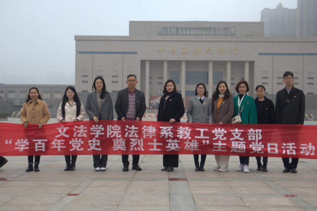 法律系教工党支部组织全体教工党员,参观中原英烈纪念馆,开展“学百年党史 奠烈士英雄”主题党日活动。