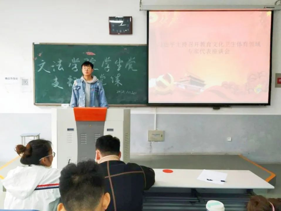 活动伊始,党员学习了习近平总书记于9月22日下午在京主持召开教育文化卫生体育领域专家代表座谈会并发表重要讲话,就“十四五”时期经济社会发展听取意见和建议。
