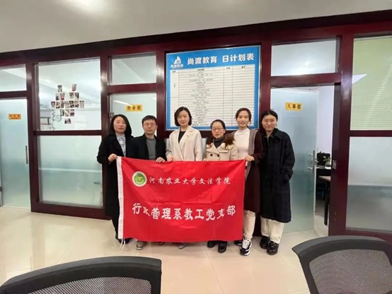 优秀校友,毕业后,响应国家的号召,自主创业,艰苦奋斗,深耕教育培训行业近10年,在业内取得了良好的声誉。活动中,行政管理系教工党支部一行与尚渡教育的负责人进行了深入座谈,了解了当前教育培训行业的困境,以及教育培训行业规范化发展的理念和评估标准。支部成员利用专业知识对尚渡教育有限公司面临的困境提出了解决的思路,既要全面贯彻行业新发展理念,完善推广相关服务标准,发挥行业引领作用,向更加标准化、规范化方向发展。在座谈中,牛娟强调,在今后工作中,要不断加强校企合作,发挥好高校“智囊团”的作用,支部成员要牢记宗旨意识,践行为民初心,把“我为群众办实事”的理念贯穿始终,办实事解难题,担负起时代赋予的责任和担当。