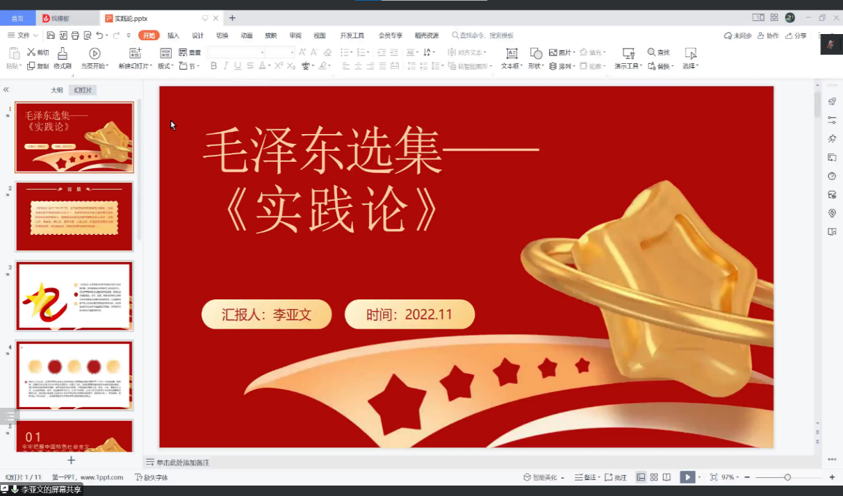 本科生三四党支部于2022年11月22日中午通过腾讯会议线上会议开展了以学生党员代表微党课分享为主要形式的党课。