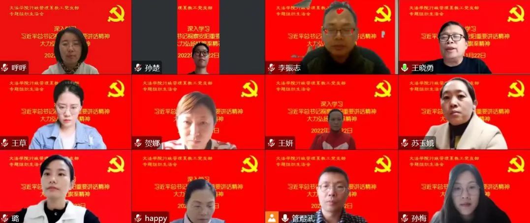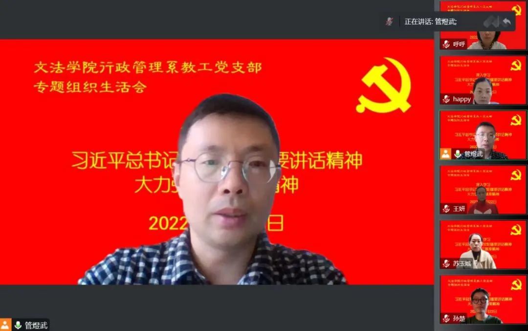 行政管理系教工党支部召开“深入学习习近平总书记视察安阳重要讲话精神,大力弘扬红旗渠精神”专题组织生活会,会议采取线上形式举行。支部全体党员参加,院长王晓勇以普通党员身份参与,会议由支部书记管煜武主持。