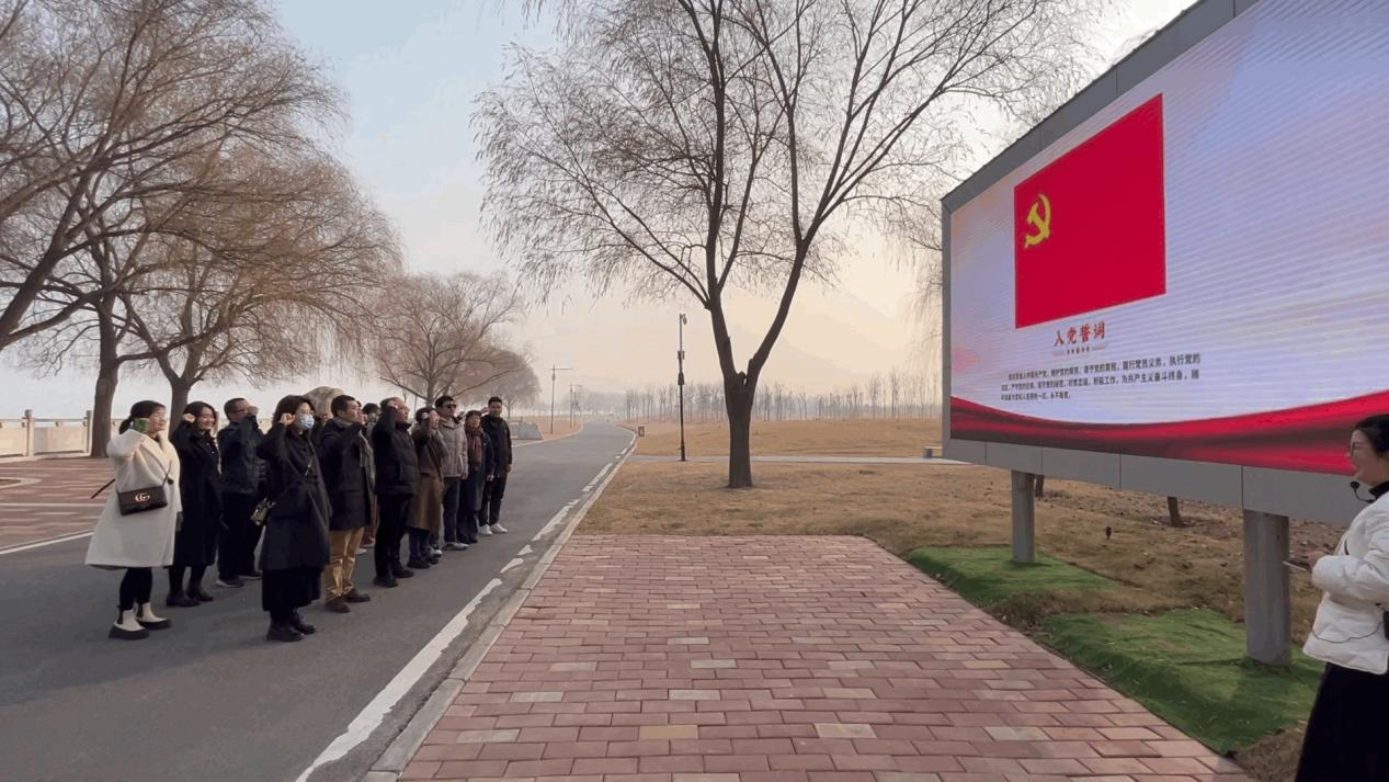 在主题教育学习点讲解员指引下,支部党员观瞻中华民族百位先贤雕塑,认真温故117名民族先贤的事迹和对中华文明的卓越贡献;听取黄河“三桥汇”历史发展介绍,领略中华民族近代以来从站起来,到富起来,再到强起来的奋斗发展史;一起循迹总书记徒步黄河沿线,深悟“两个结合”。党支部书记刘风带领全体党员,在临河广场重温入党誓词。