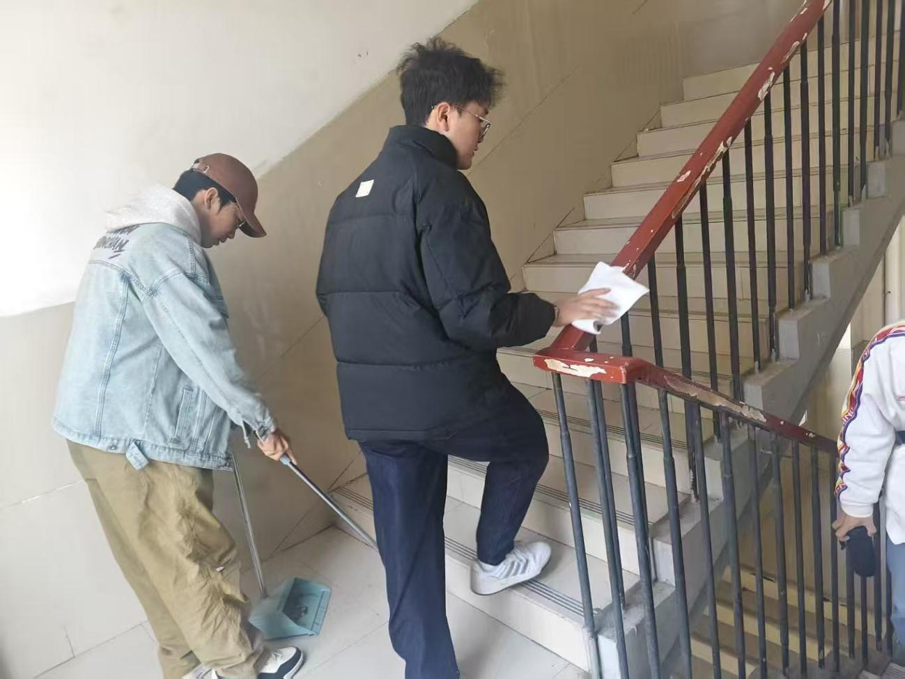 活动中,学生党员明确任务分工,划定责任区域,在了解活动纪律与安全注意事项后,他们手持扫帚、拖把、垃圾袋等工具,有序开展垃圾捡拾、落叶清扫等工作,重点对宿舍楼楼道、洗漱间、窗台等进行全面清理。学生党员们分工协作,不仅改善了宿舍楼卫生环境,还以实际行动诠释党员的责任与担当,充分发挥了党员的先锋模范作用。大家纷纷表示,此次主题党日活动意义深刻,未来将把劳动精神融入日常学习和工作,在服务同学、奉献集体中彰显党员价值。