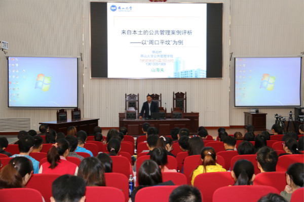 2017年11月7日上午,燕山大学公共管理学院教授、MPA中心韩兆柱主任应邀来h漫 讲学并做题为《来自身边的公共管理案例分析---以周口平坟事件为例》的学术报告。报告会在龙子湖校区繁塔楼h漫 模拟法庭举行,h漫 院长王晓勇教授主持并对报告做了精彩点评,行政管理系教师和行政管理专业本科生聆听了该报告。