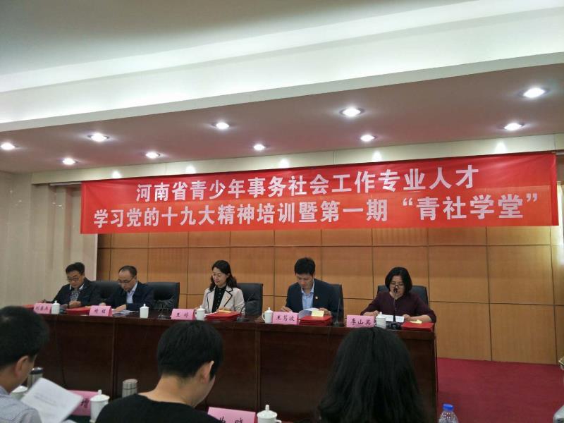 2018年4月24日,应共青团河南省委社会联络部邀请,h漫 李伟老师参加了“学习新思想建功新时代——河南省青少年事务社会工作专业人才学习党的十九大精神培训暨第一期‘青社学堂’开班仪式”。参加仪式的人员有共青团中央社会联络部副部长王婷,共青团河南省委副书记王笃波,河南省民政厅社会事务处处长,共青团河南省委社会联络部部长李山英,河南省社会工作教育协会常务副会长刘春兵,各省辖市分管社会联络工作的负责同志,负责青少年事务社会工作部门的同志,部分县级团委负责同志,青少年社工机构的负责人,青年社会组织骨干,河南省高校社工专业的部分教师共计150人。