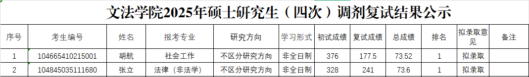 h漫 2025年硕士研究生招生(四次)调剂考生复试成绩公示