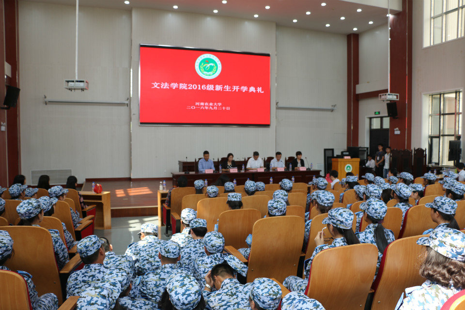 2016级新生开学典礼在龙子湖校区模拟法庭隆重举行。伴随着庄严的国歌,开学典礼正式开始,数百名2016级文法新生与院党委书记李培玉、院长王晓勇、党委副书记王燕萍、副院长酒梅菊、张帅梁、团委老师、及各专业教师代表共聚一堂,以庄重严肃的典礼,开启人生的崭新一页。