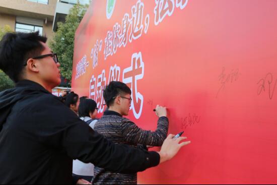 启动仪式结束后各位领导、老师、同学们在活动展板上签名留念,彰显出h漫