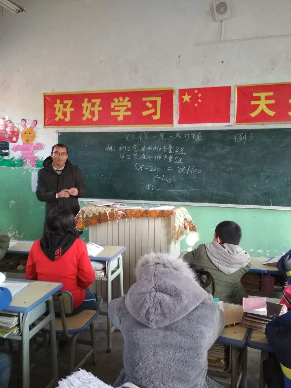 这是一所维吾尔族学校,所有学生全是维吾尔族,全校一百二十名教师中,只有三十二名汉族老师。商朝帅同学担任七年级的数学课教师,由于学生整体普通话基础薄弱,刚开始交流都很困难。商朝帅同学不仅在课堂上认真教孩子们学习,平时也带孩子们进行各种课余活动,组织他们举行简单的体育比赛,和学生迅速打成一片,形成良好的亦师亦友的关系。另外就是因材施教,在课下对学习差的孩子,商朝帅同学就牺牲自己的休息时间,积极为孩子们补课,让每一位学生都感受到老师的关爱。