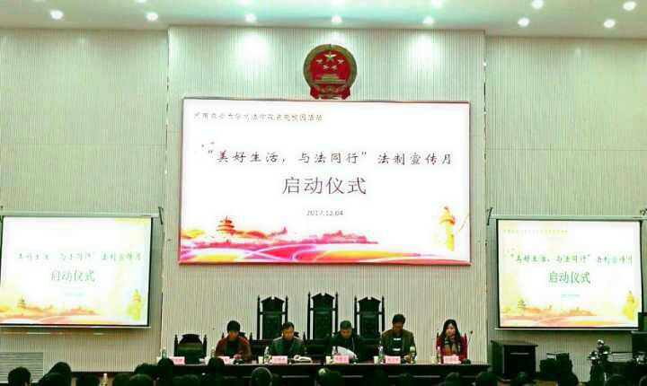 12月4日国家宪法日当天,法制宣传月开幕式在龙子湖校区“模拟法庭”举行。院长王晓勇,酒梅菊,李培玉书记等h漫 主要领导及团委老师到场参加开幕式。校“双千”计划兼职教授以及师生代表参加启动仪式。启动仪式由h漫 副院长酒梅菊主持。