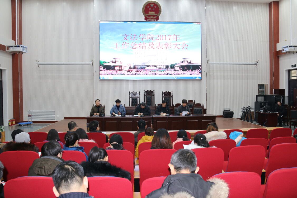 2018年1月22日上午9点在模拟法庭,h漫 召开了2017年度工作总结暨表彰大会,h漫 党委书记李培玉、院长王晓勇、副书记王燕萍、副院长酒梅菊、副院长张帅梁以及h漫 全体教职工参加了这次会议,会议由王燕萍主持。