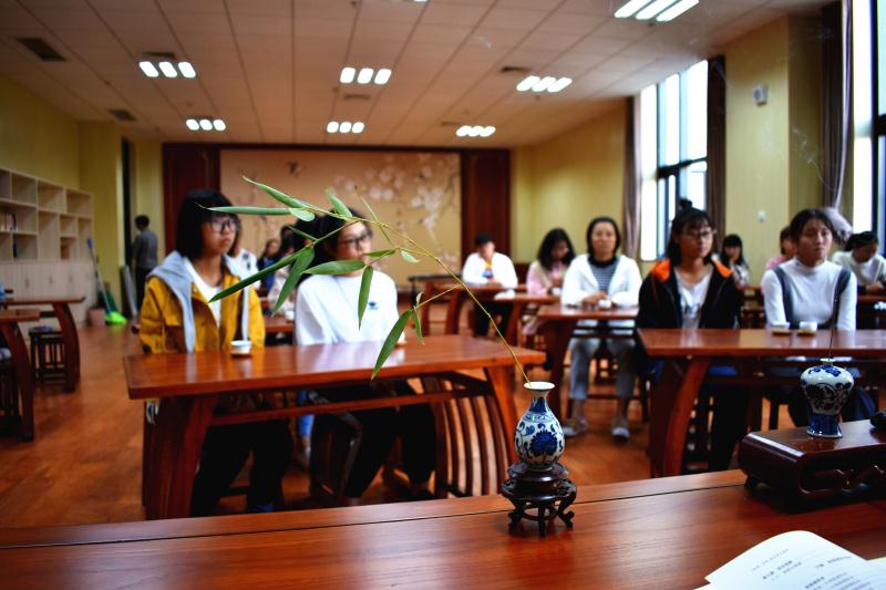 群贤毕至,少长咸集。10月10日,h漫 中文系在装饰一新的艺术实训中心开展了第一次雅集活动。中文系主任金琳老师和王睿、刘华、张二龙老师以及汉语国际教育专业18级部分学生参加了活动。
