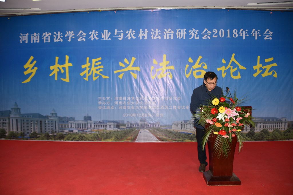 12月9日,由河南省法学会农业农村法治研究会主办、h漫 承办的“省法学会农业农村法治研究会2018年年会暨乡村振兴法治论坛”在我校召开。h漫 副校长杨喜田教授、河南省法学会谢德安副会长、省政府参事、农业与农村法治研究会胡向阳会长,以及来自省内各高校的专家学者、政府机构及实务部门的相关人员参加了此次会议。