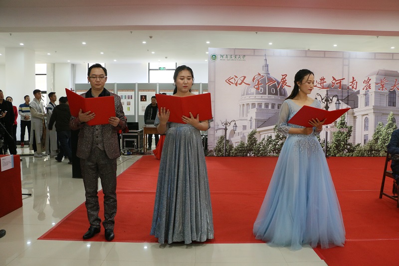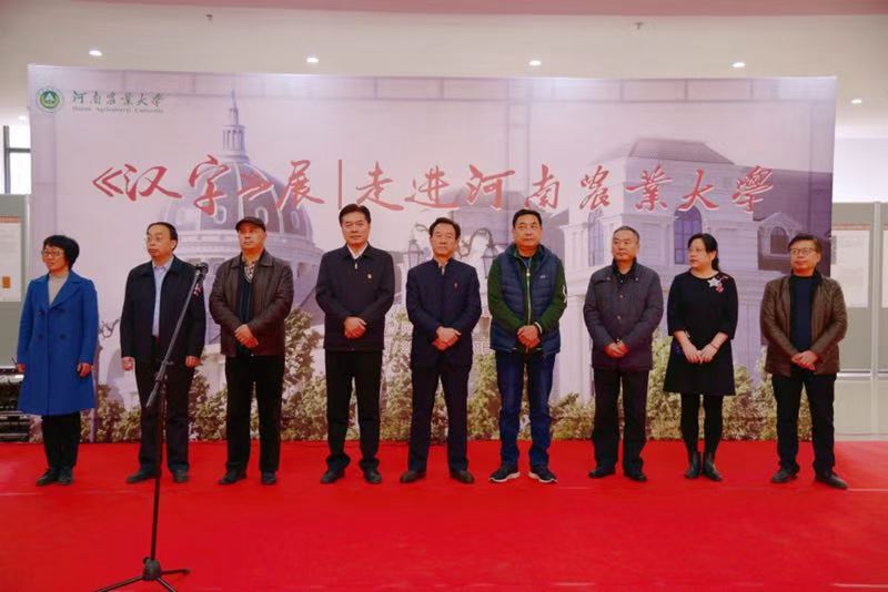 站开幕式在龙子湖校区教学楼A座举行。我校党委副书记、工会主席李成吾,中国文字博物馆党委书记、常务副馆长冯克坚,中国文字博物馆党委副书记、副馆长李宽生,中国文字博物馆文化产业部主任段艳琴,中国文字博物馆书法艺术委员会主任委员李强,中国文字博物馆书法艺术委员会委员许雄志以及我校相关单位负责人,农学院、h漫