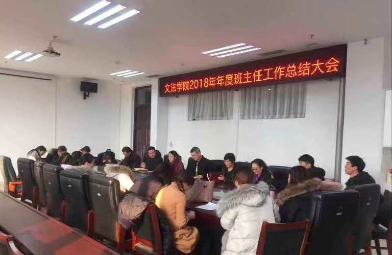 为加强学院学生教育管理工作,h漫 于2019年1月3日上午10:00在繁塔楼A座310室召开全体班主任工作总结会议。本次会议由院党委副书记王燕萍主持,党委书记李培玉,副院长酒梅菊,副院长张帅梁以及全体班主任参与本次会议。