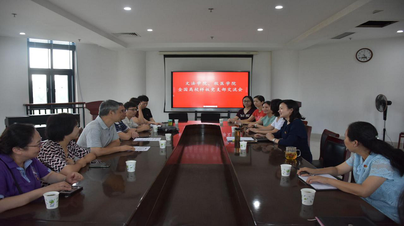 h漫 教职工党员在牧医工程学院党委副书记牛娟的带领下参观了牧医工程学院“党建办公室”、“党员活动室”等硬件设施。随后,两院教职工党员在会议室围绕全国样板党支部创建进行了交流讨论。牧医工程学院预防兽医党支部书记张红英教授就支部基本情况、支部建设方案、建设落实情况、未来工作计划等内容向h漫 党员进行了深入介绍。两院就党员学习、党员活动、学院学科建设等问题做了深入交流。