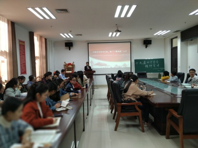 h漫 党委组织员朱瑞萍和毕业班第二党支部党员王俐分别针对师生党员,以《以强农兴农为己任,做“一懂两爱”人才》为主题,从党的十九届四中全会精神解读和农大师生要学思践行做到“三争做”两方面展开,对党的十九届四中全会精神进行系统细致解读,从一个纲领性文件,一个重要结论,一项重大战略任务,一个总体目标,我国国家制度和国家治理体系的显著优势——十三个“坚持”等多个方面讲解,并结合实际讲解了我校百年来的艰辛办学历程和现今的蓬勃发展,生动讲述了农大先进典型人物的模范事迹,要意识到模范就在身边,激励我们时刻学习先进典型,重温榜样力量。