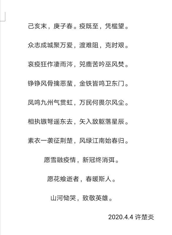 为响应国务院关于“2020年4月4日举行全国性哀悼活动”的公告,h漫