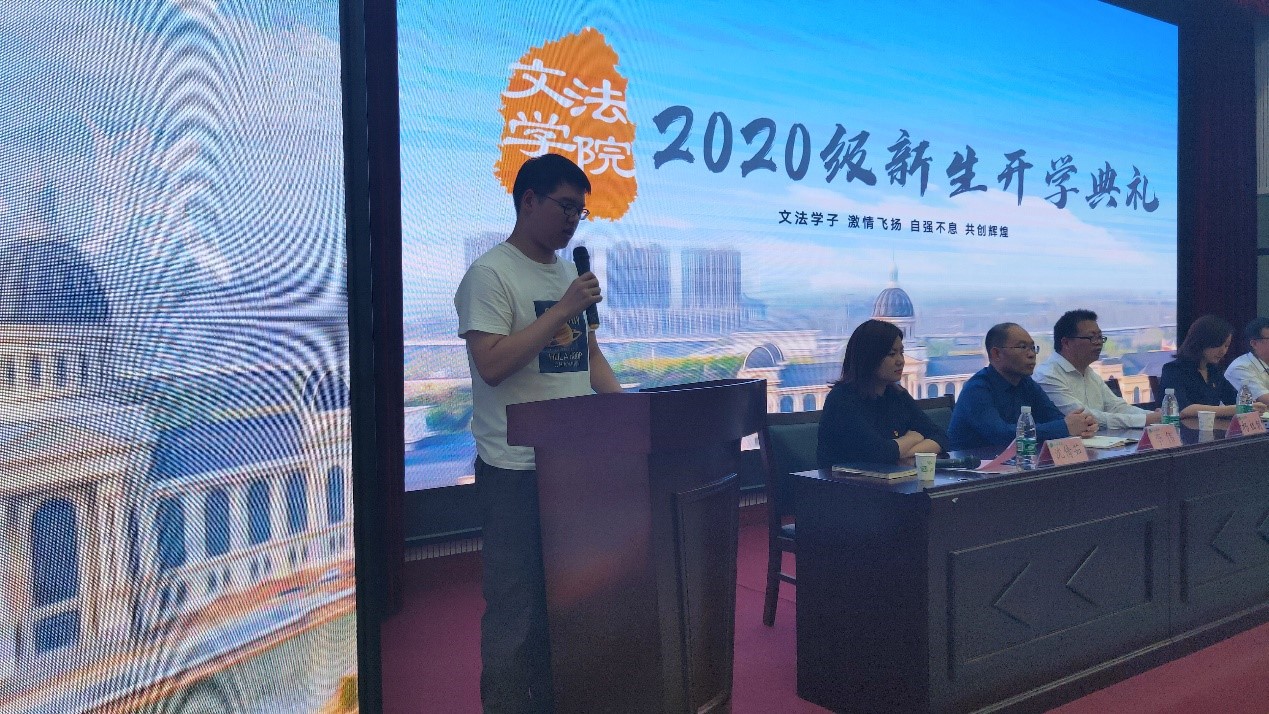 2020级本科生新生代表社会工作专业陈桂东及研究生新生代表农业管理专业姜泽臻分别发言,他们对接下来的大学生活充满希冀,并表示作为文法人应当不忘初心、坚守本分,秉承校训砥砺前行,共同创建美好文法。