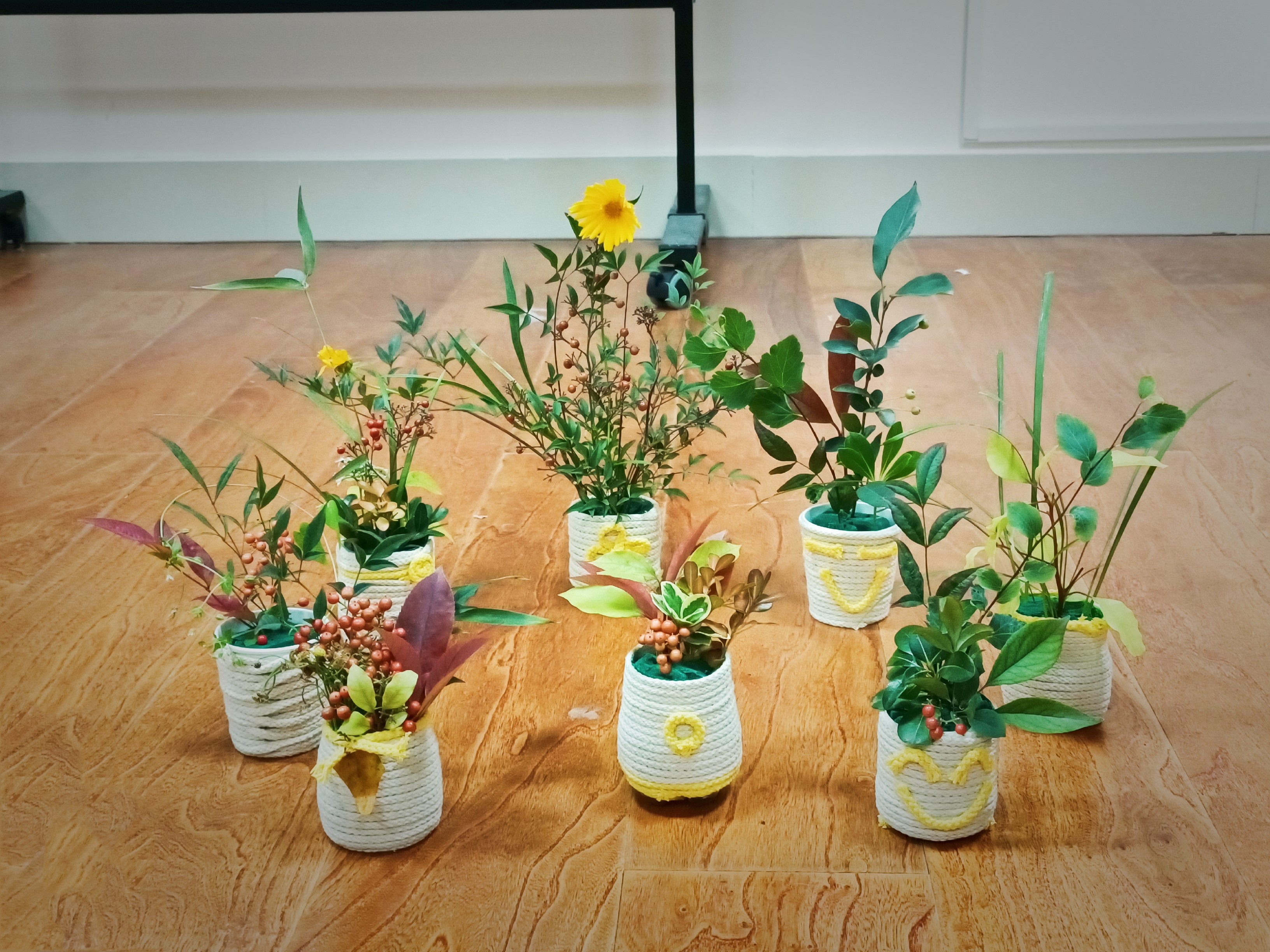 本次减压活动通过节前能量测试、热身游戏“盖棉被”、现场分享和插草体验等环节,运用园艺文化的魅力来舒缓压力。活动期间一个个其貌不扬的空瓶子在参与者的精心制作下充满了艺术气息,一个个小巧而美好的作品在每一个成员的精心打造下诞生。“我的叫郁郁葱葱”,“我的叫百家草”,“我在参与中收获了宁静和喜悦”……每个人都尽情分享着自己的作品和感受。