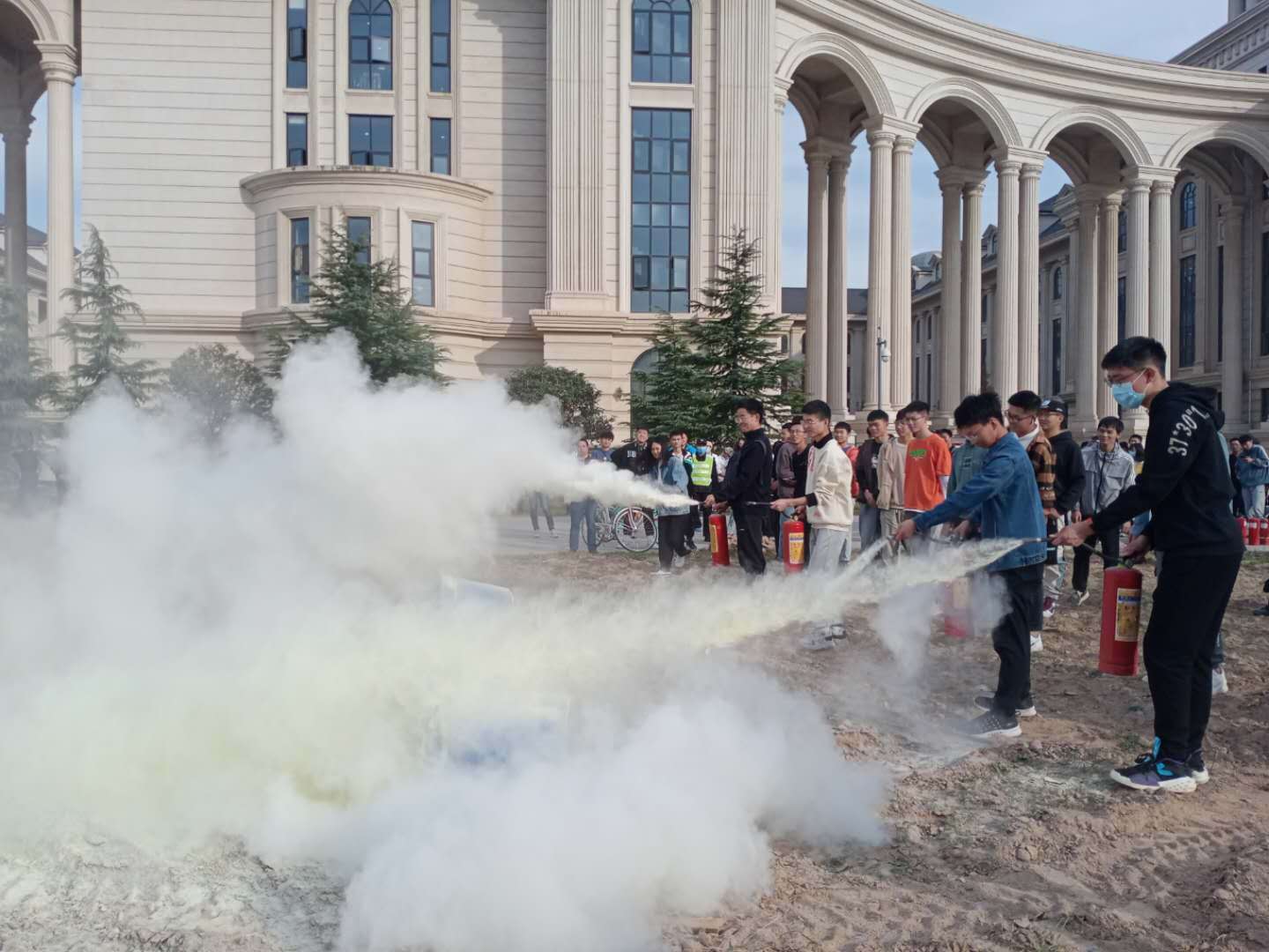 h漫 学生踊跃参与灭火器实际操作