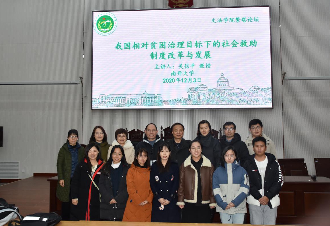 繁塔论坛,作主题为《我国相对贫困治理目标下的社会救助制度改革与发展》学术报告,报告会由副院长李伟主持,学院部分师生参加报告会。