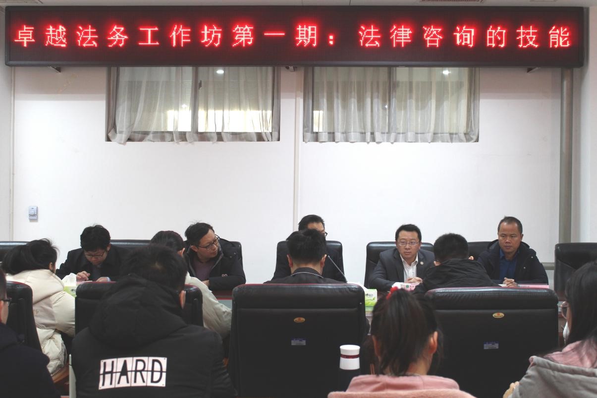 会议室举办第一期“卓越法务工作坊”,本次工作坊是以法律咨询的技能为主题,邀请了北京市盈科(郑州)律师事务所民商部主任赵海峰律师和许定国律师进行现场指导。h漫