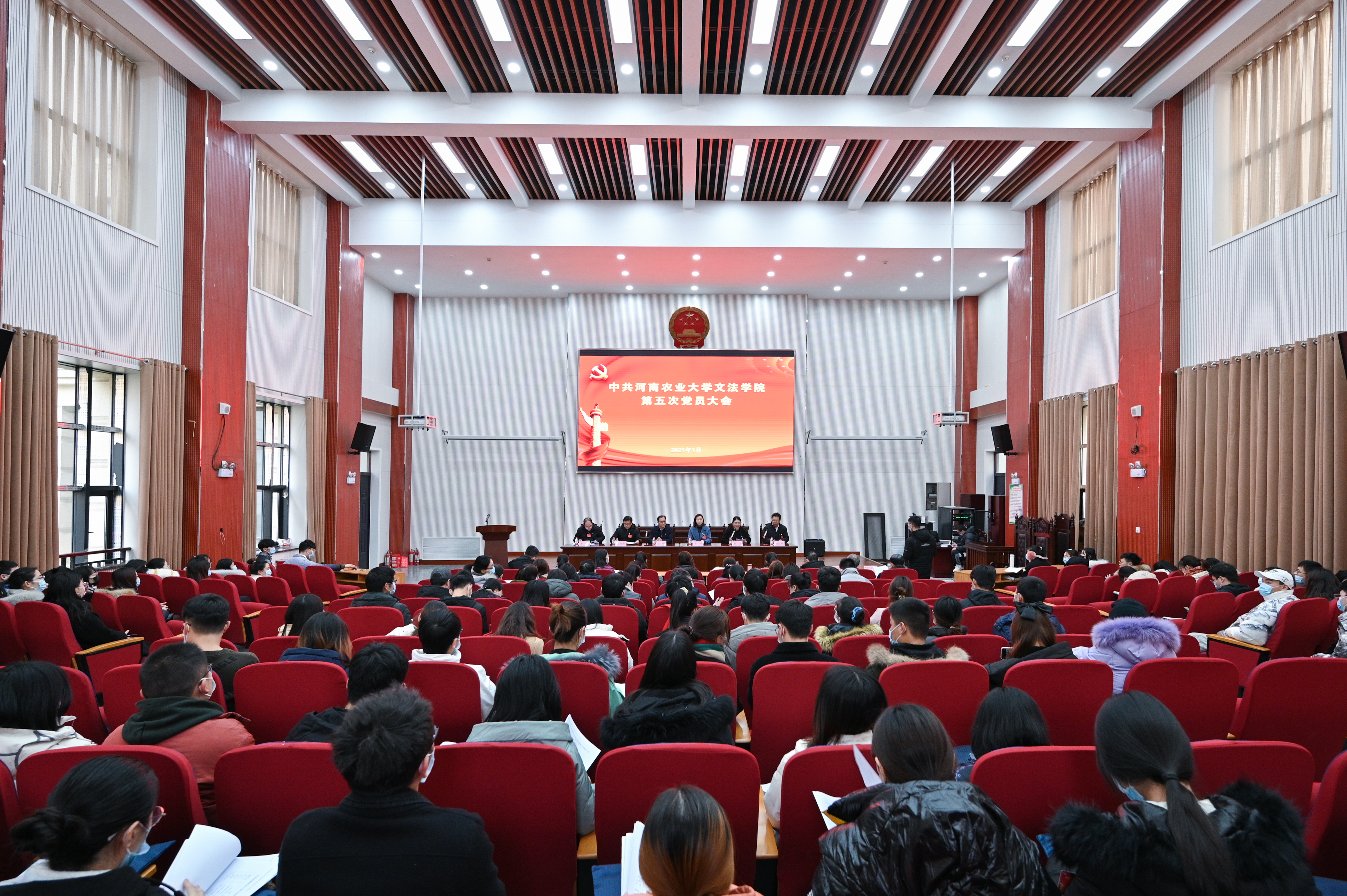 第五次党员大会在龙子湖校区模拟法庭隆重举行。校党委组织部副部长冯晖受邀出席会议,院党委书记牛娟,院长王晓勇,副院长杨红朝、李伟及学院全体教职工党员和学生党员参加会议,会议由党委副书记余果主持。