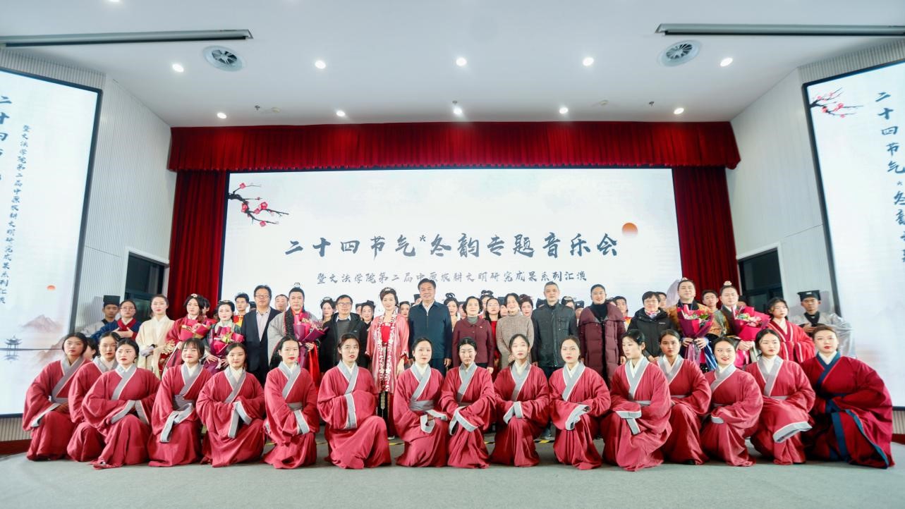 在龙子湖校区繁塔楼AB间2楼大教室举办“二十四节气·冬韵”原创专题音乐会。此次音乐会是第二届农耕文明研究系列成果汇报,由汉语系师生担任主演。校党委副书记、工会主席李成吾、副校长尹新明和机关职能部门负责人出席活动,学院师生代表观看了演出。